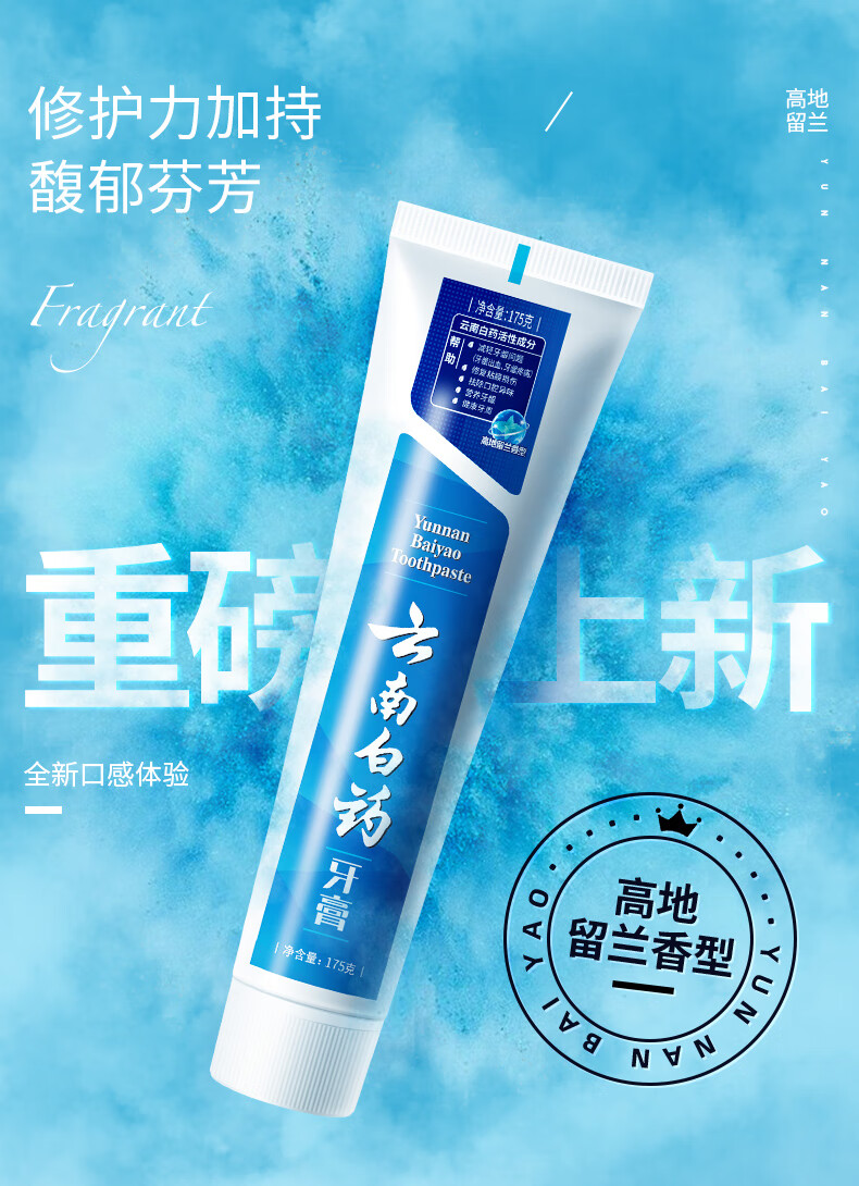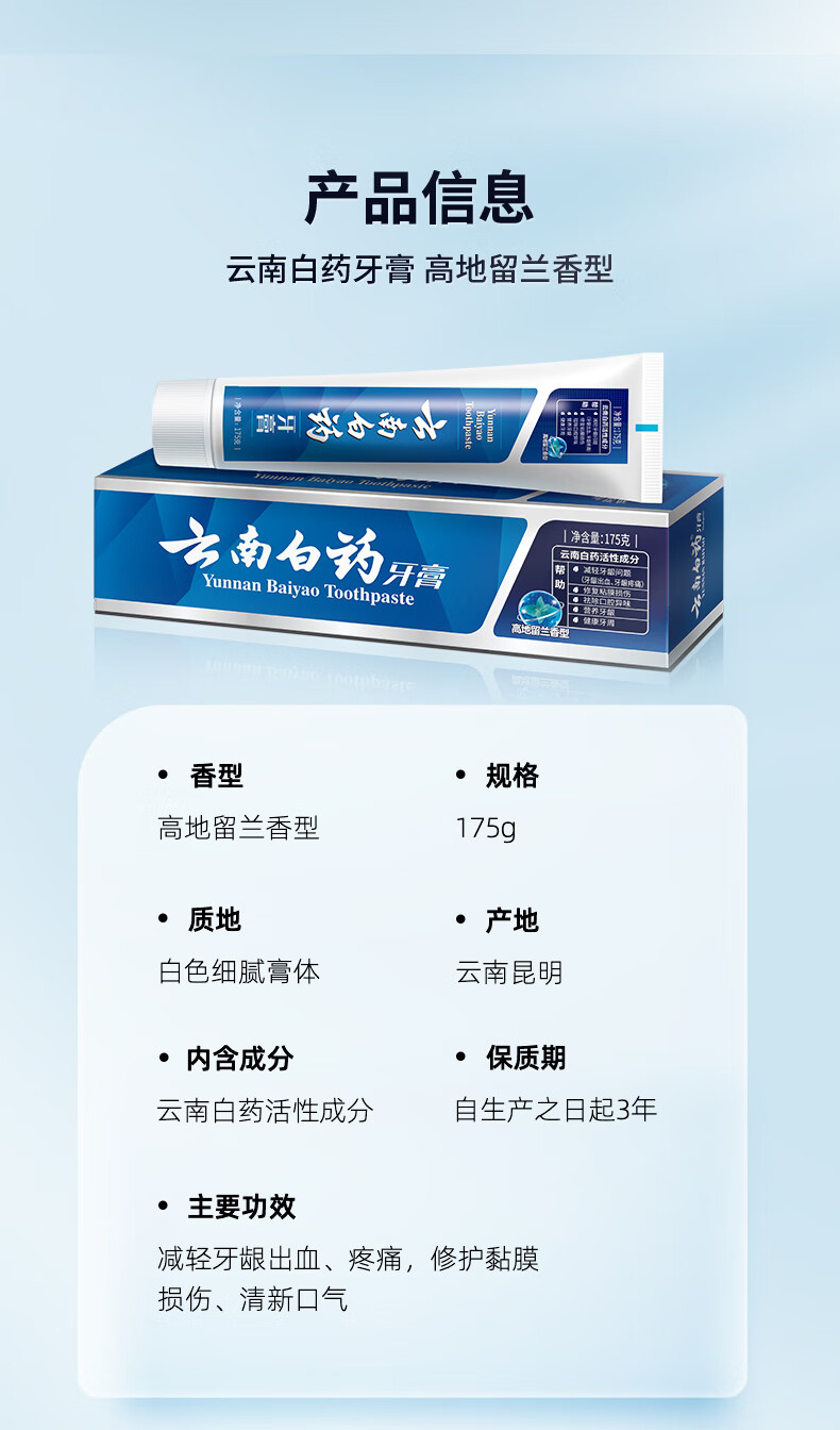 商品名称:(世星阳光)云南白药 牙膏高地留兰175g*2支 薄荷持久长效清新缓解异味